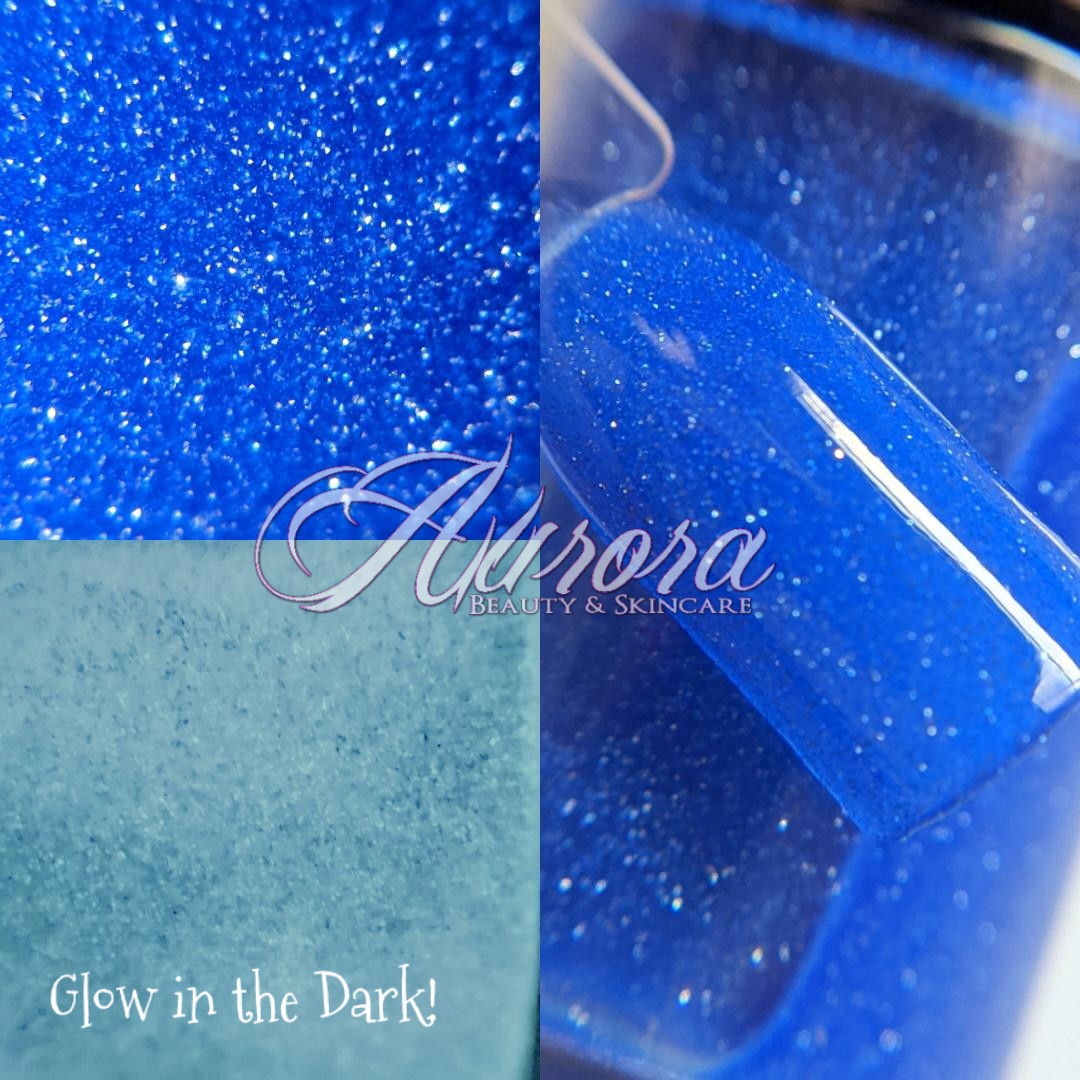 Inspired by a popular video game, Spaaace is a beautiful glow in the dark, ultramarine blue with reflective glitter.