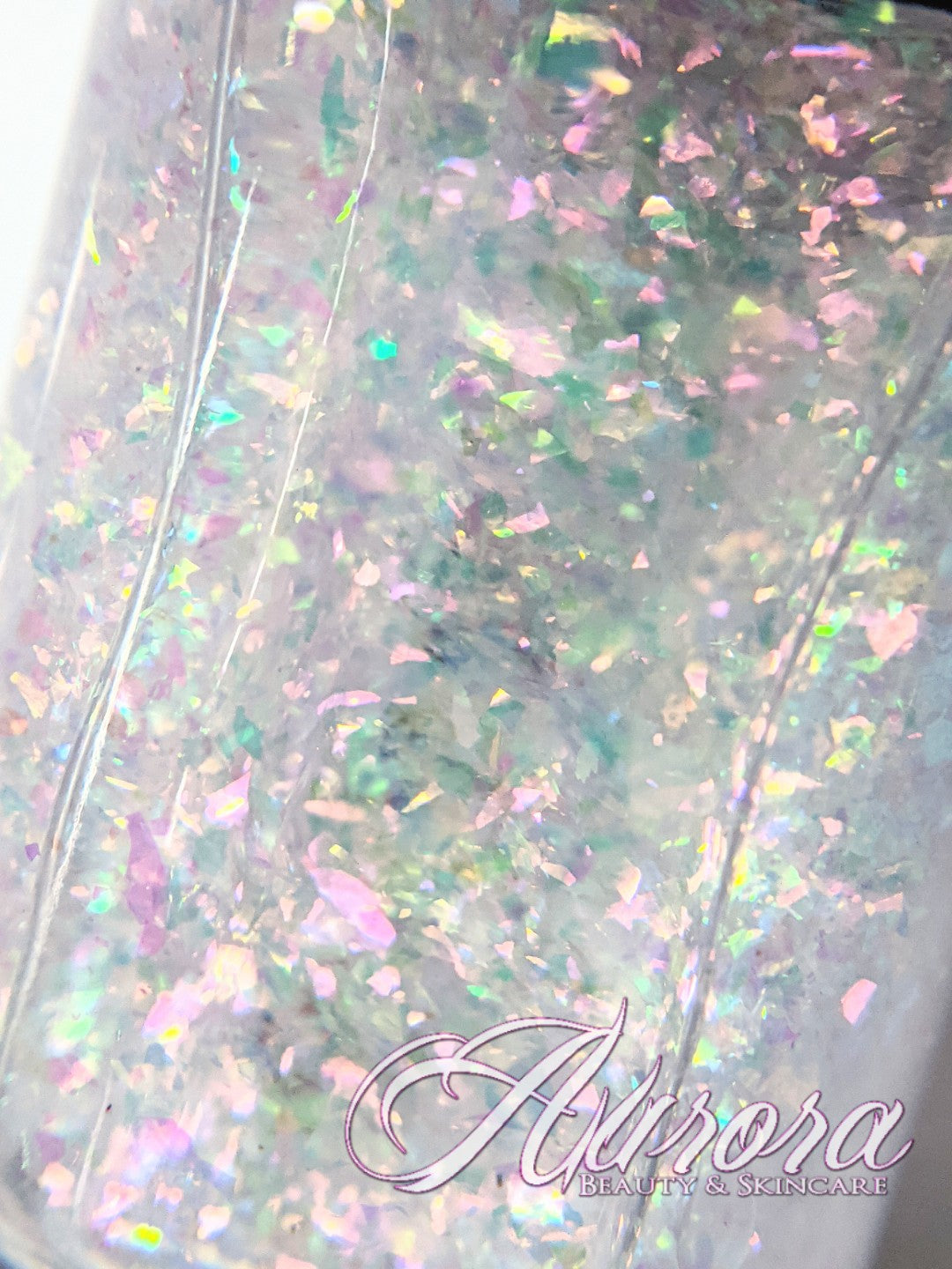 Fairy Glass (Previously called Fairy Wings) is an intense, color shifting flakey topper. The colors you'll find are pink, orange, green, yellow and teal!