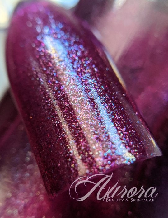 "Pit Stains" is a medium magenta color with gold and blue shimmer.