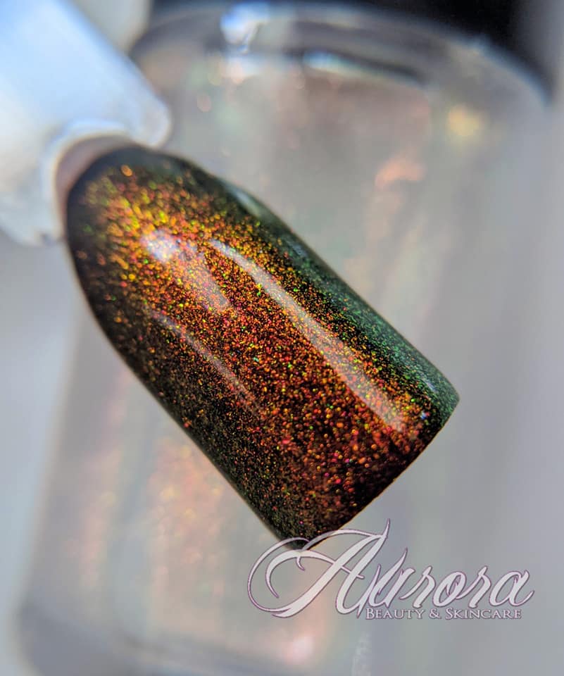 On it's own, you'll see a shimmery, bright copper. Paint it over black and... BAM! Gorgeous copper, copper red and green shift!